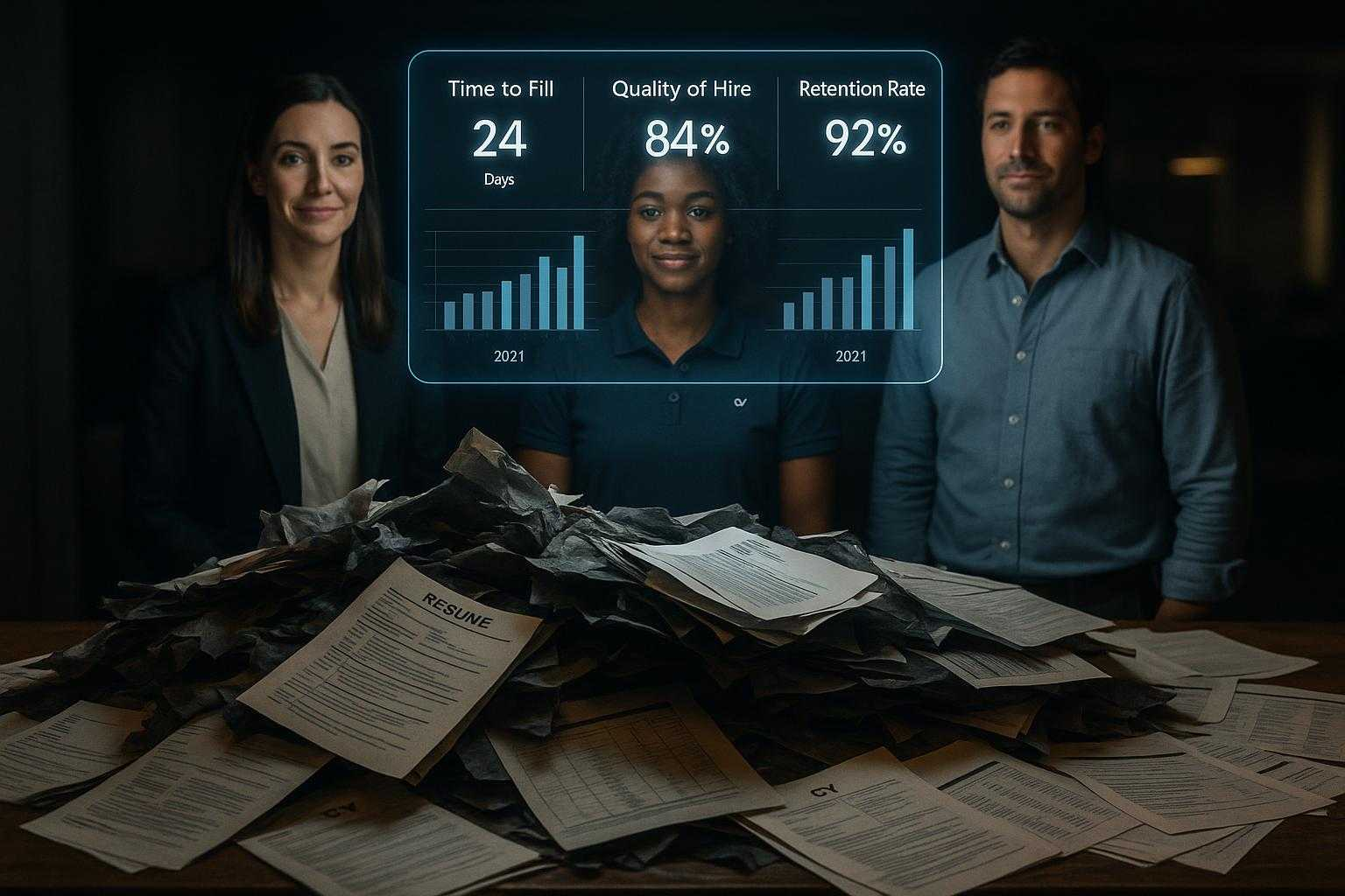 It’s exhausting when hiring dashboards turn into a data dump filled with numbers that don’t move the needle or clarify your next move. HR leaders in smart casual blazers and boots-on-the-ground execs in logo-branded polo shirts both feel the same stress. They feel the pressure to prove recruitment ROI, while wasted hours mount and the right hires still slip through.